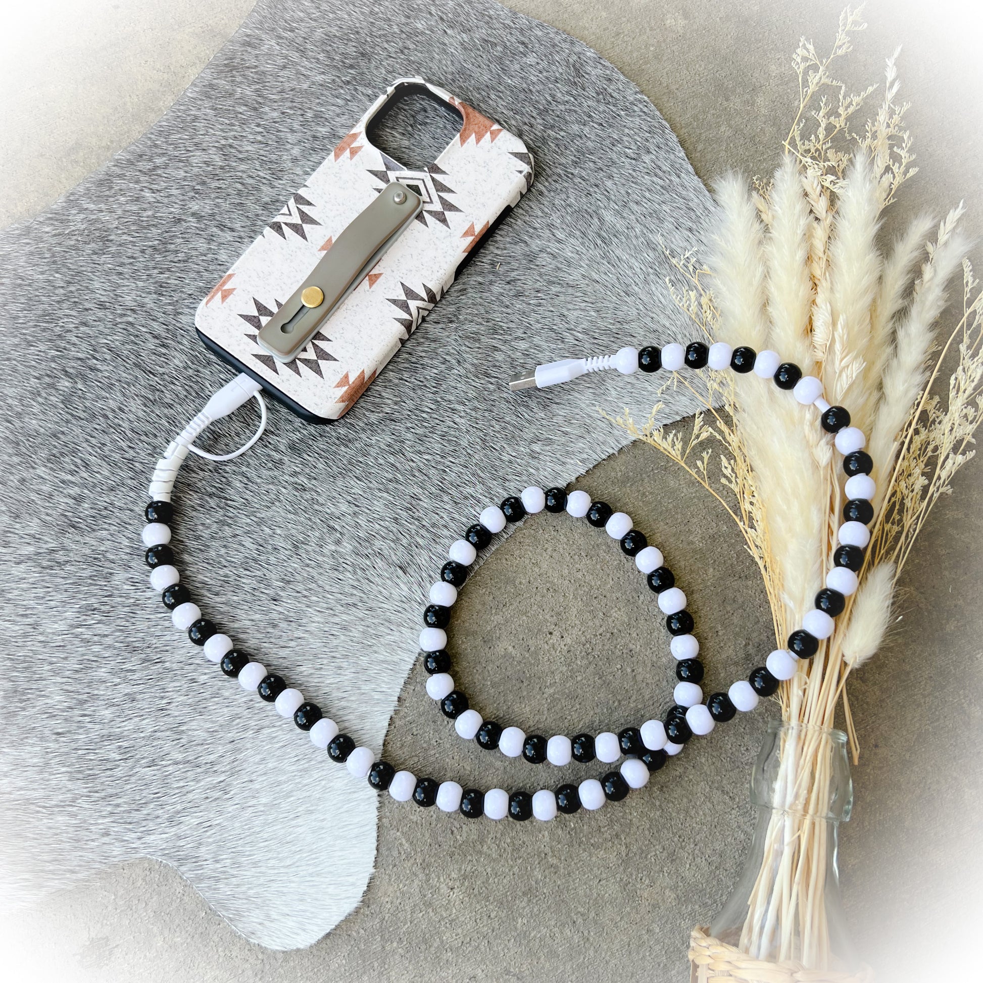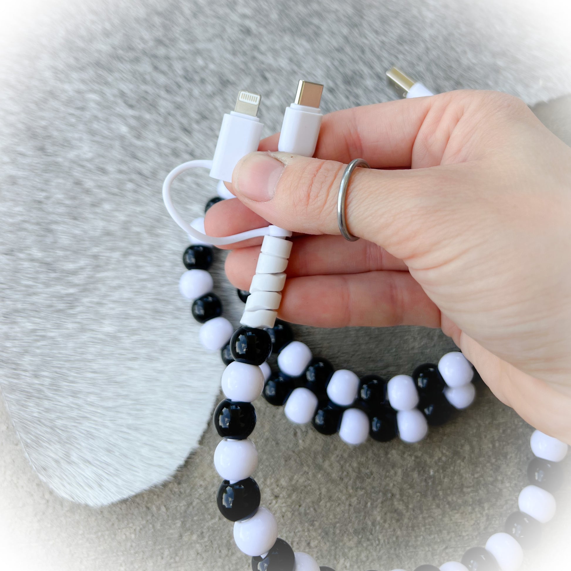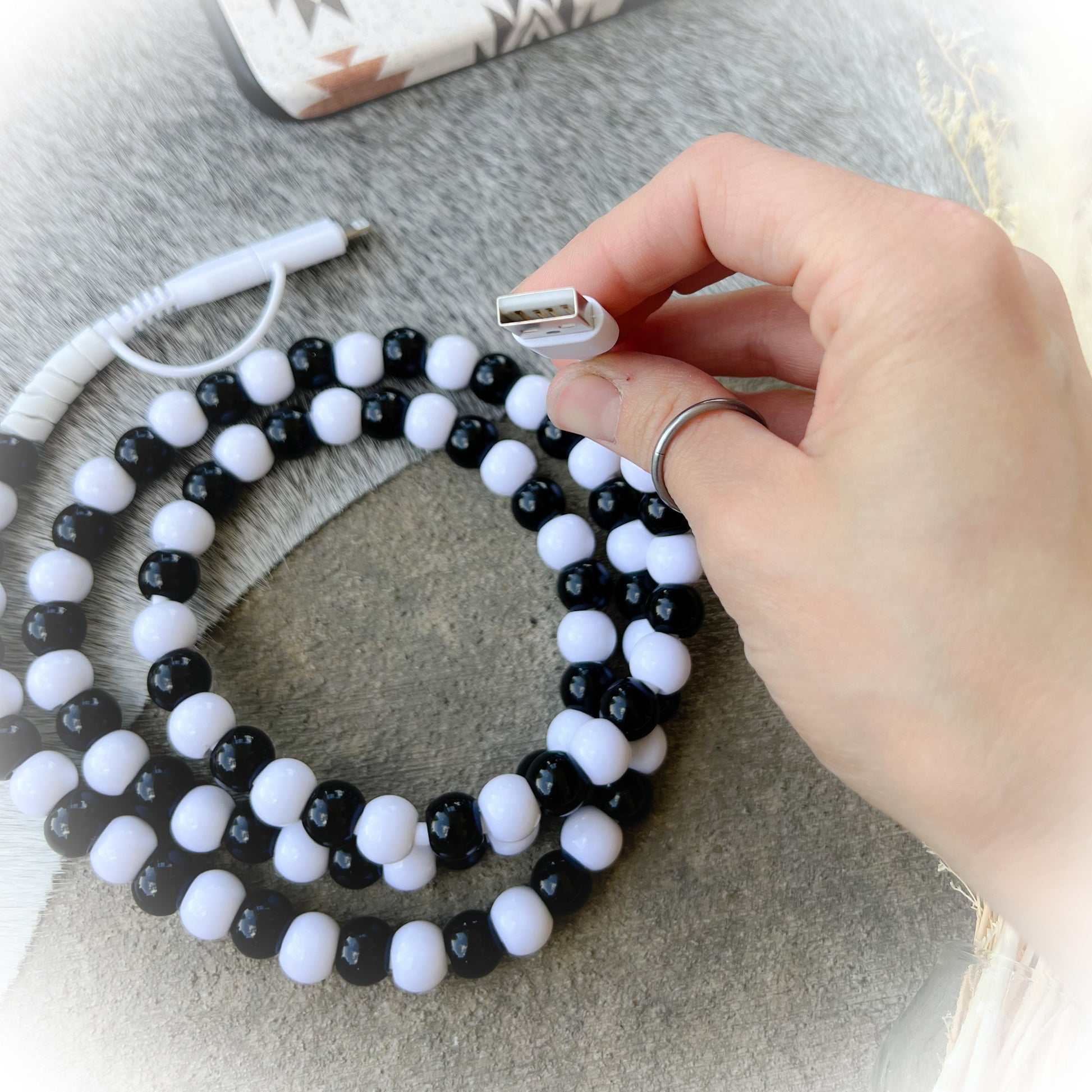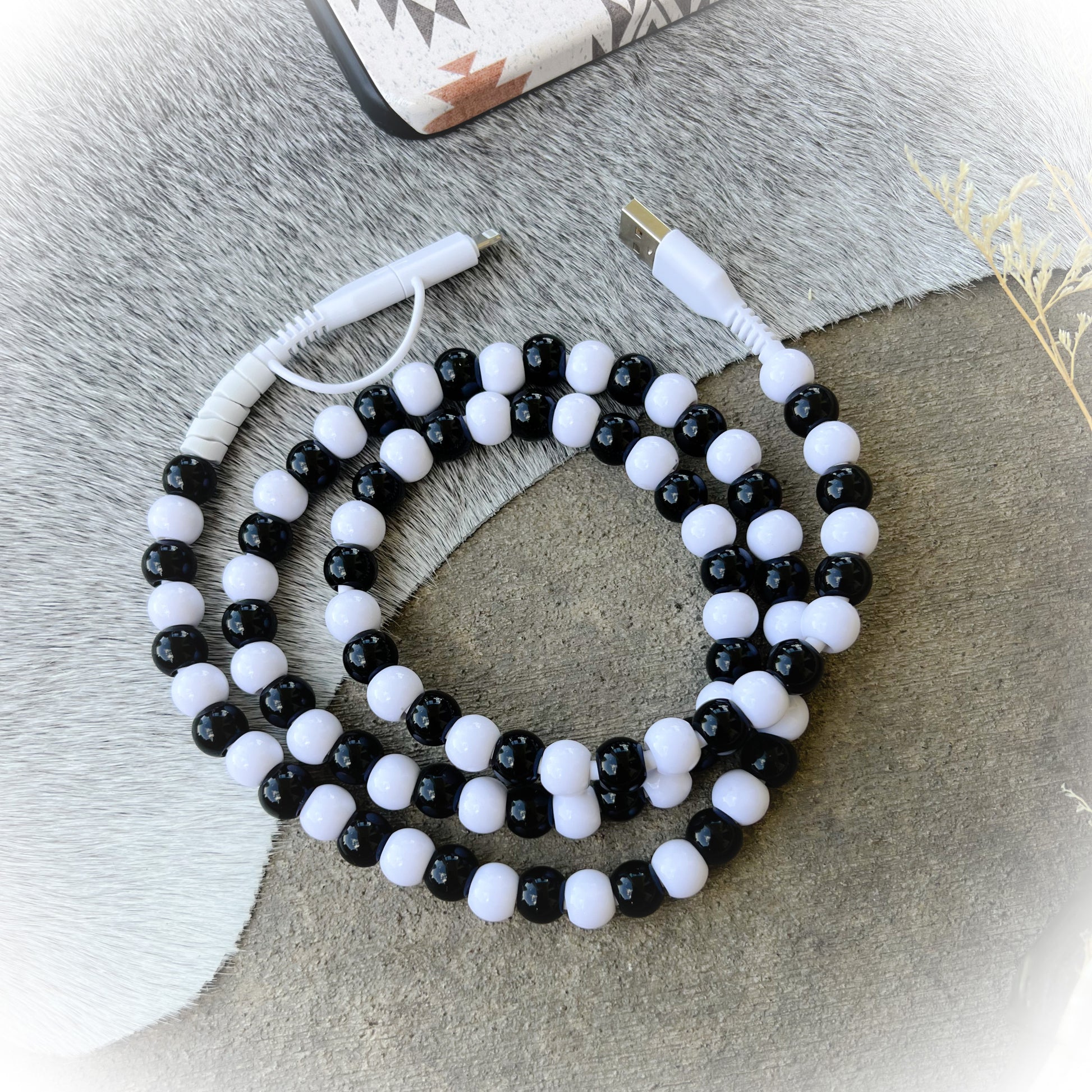 Black & White Beaded Charging Cord