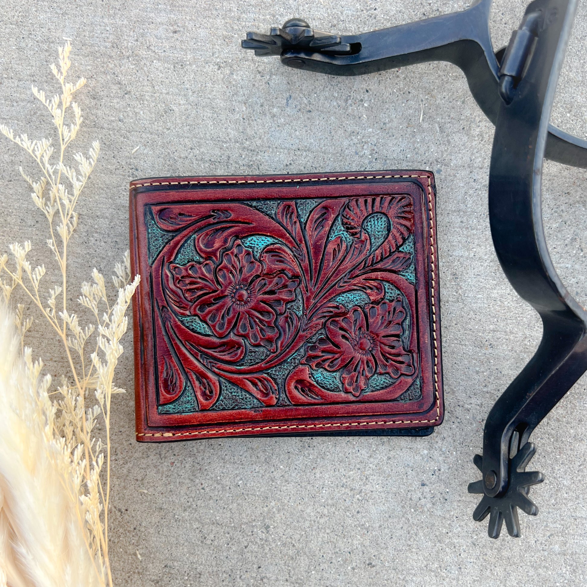 Our Western Tooled Leather Men’s Bifold Wallet is crafted from genuine full-grain leather and detailed with intricate tooled designs that capture the spirit of the American West. This rugged yet refined wallet is built to last with expert stitching, a soft distressed leather finish, and a classic bifold layout that fits comfortably in your pocket.