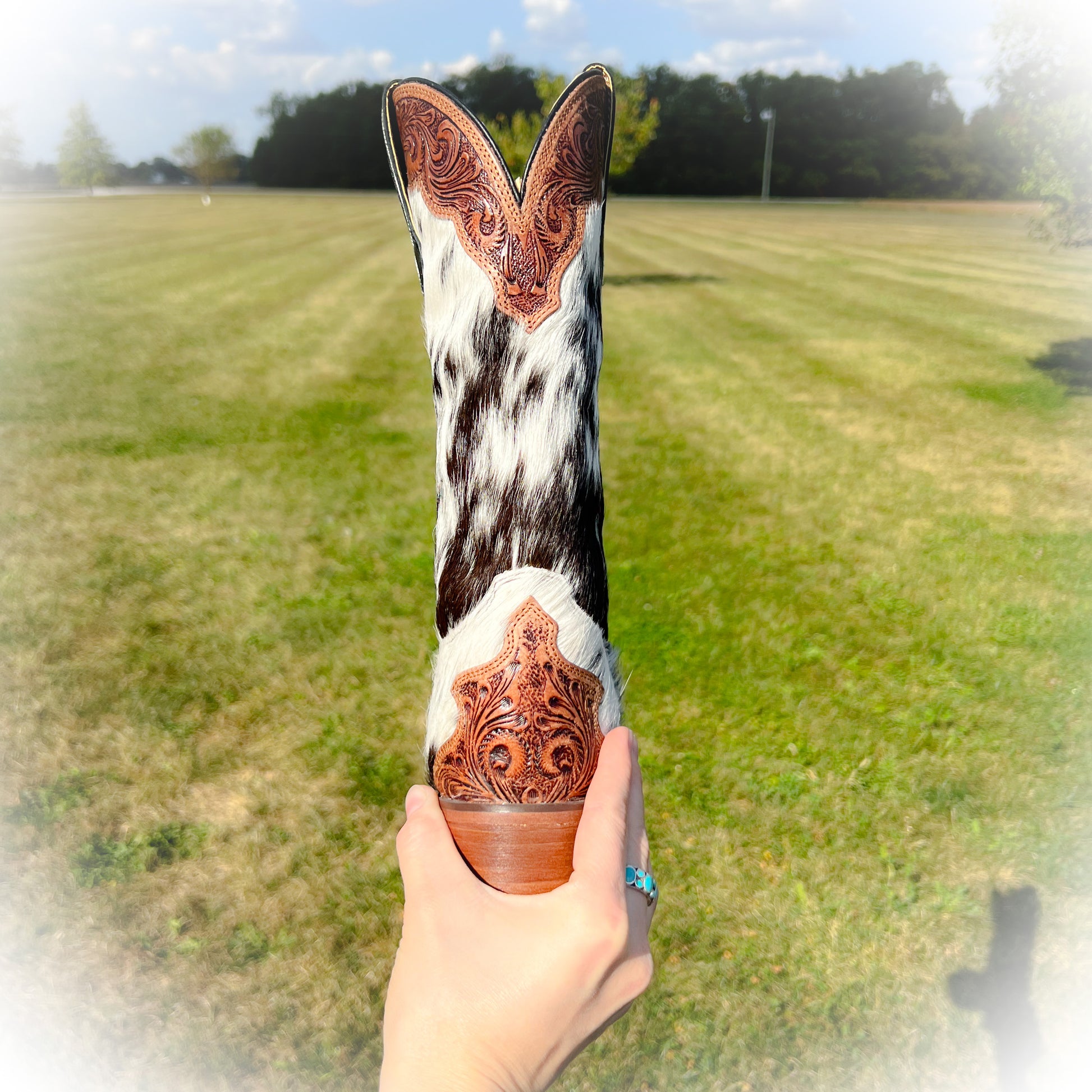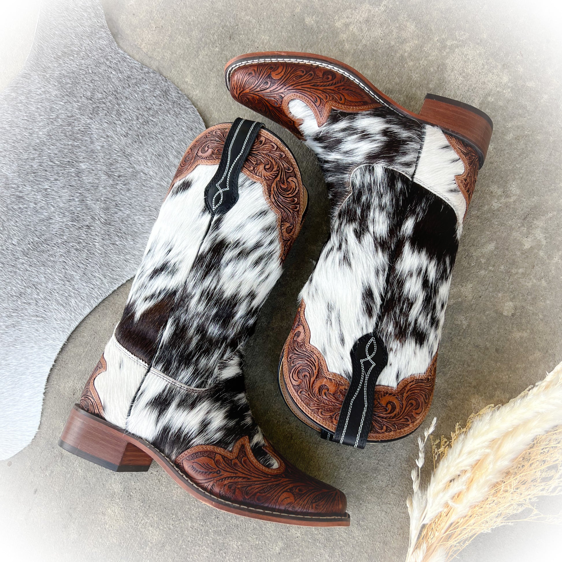 Classic Boujee Cowgirl Western Cowhide & Tooled Leather Boots - Square Toe*
