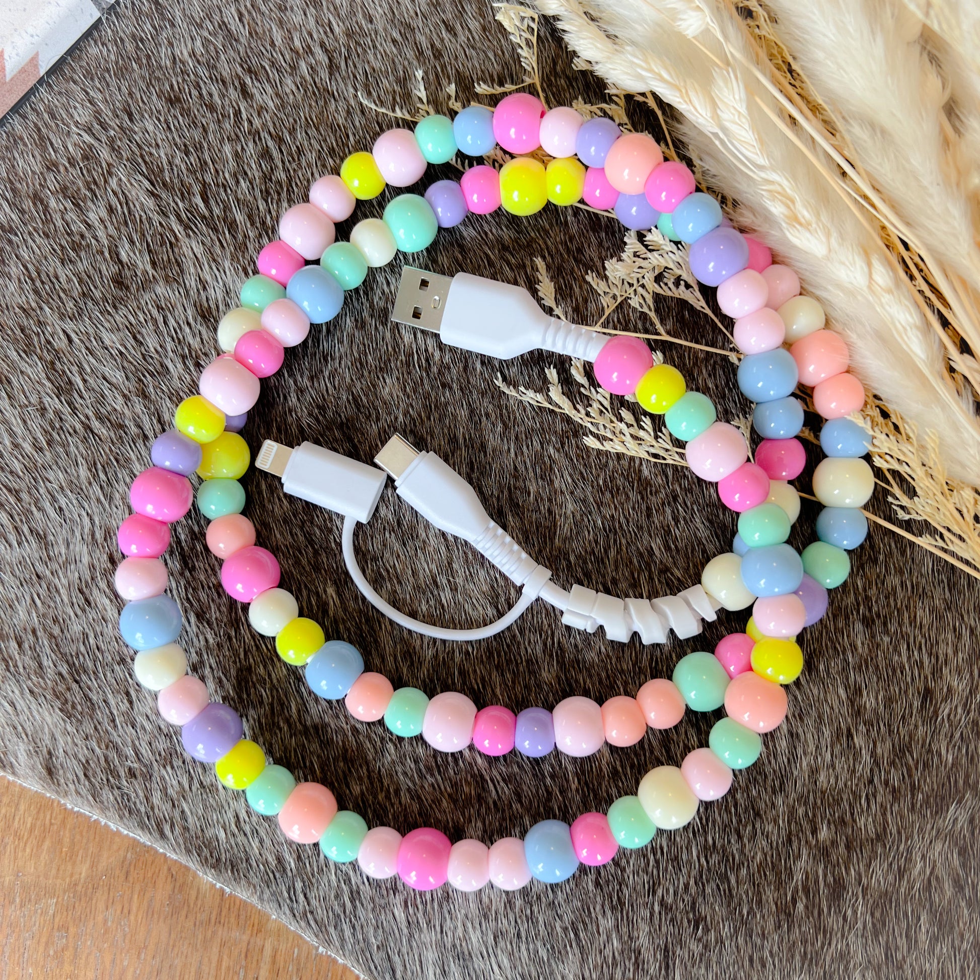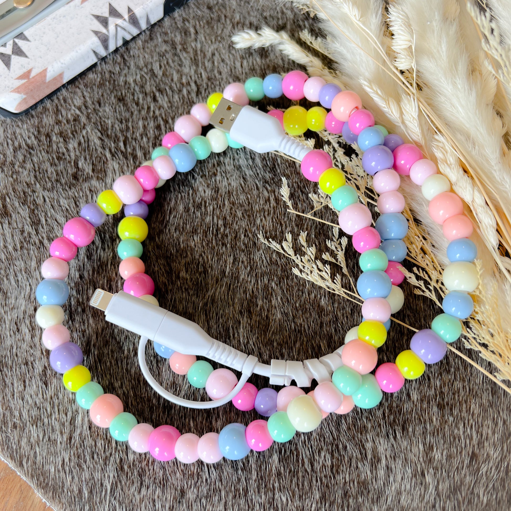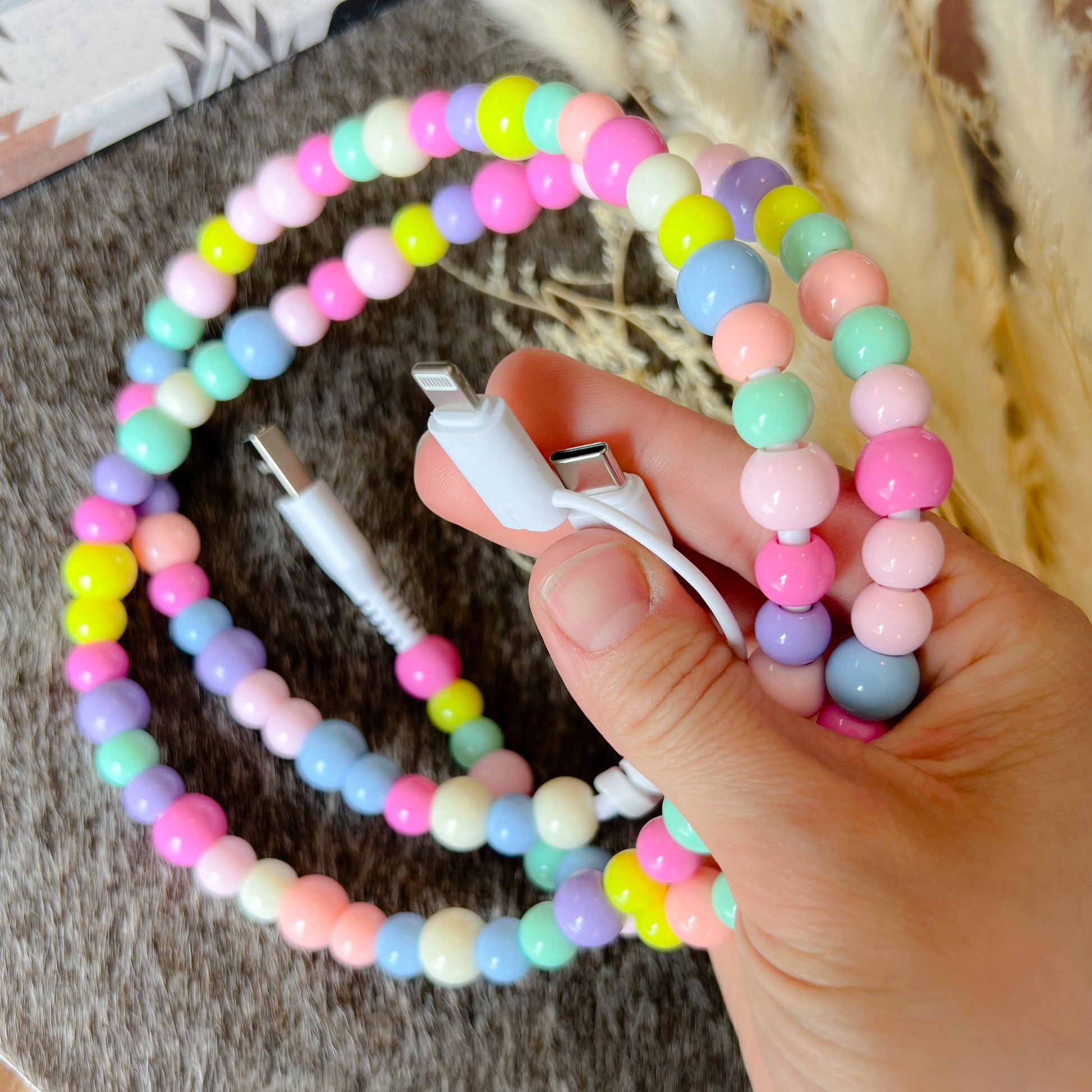 Colorful Candy Pearl Beaded 3-in-1 Phone Charger