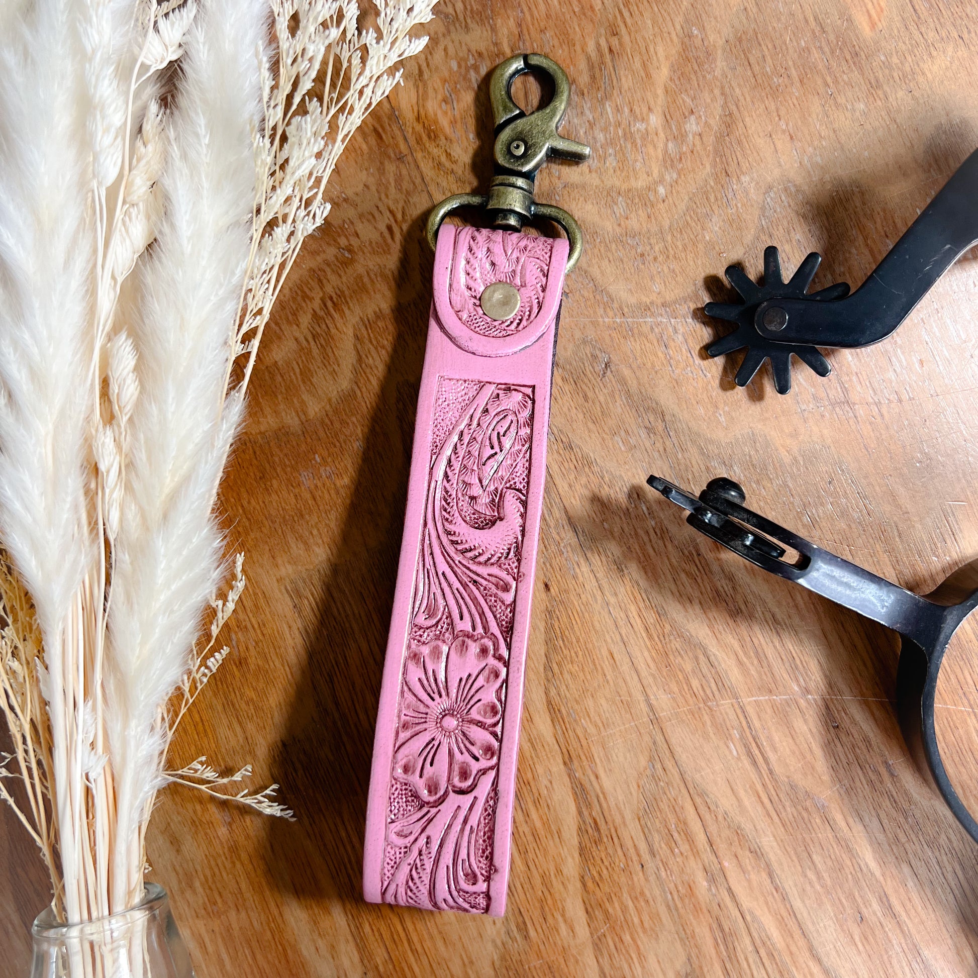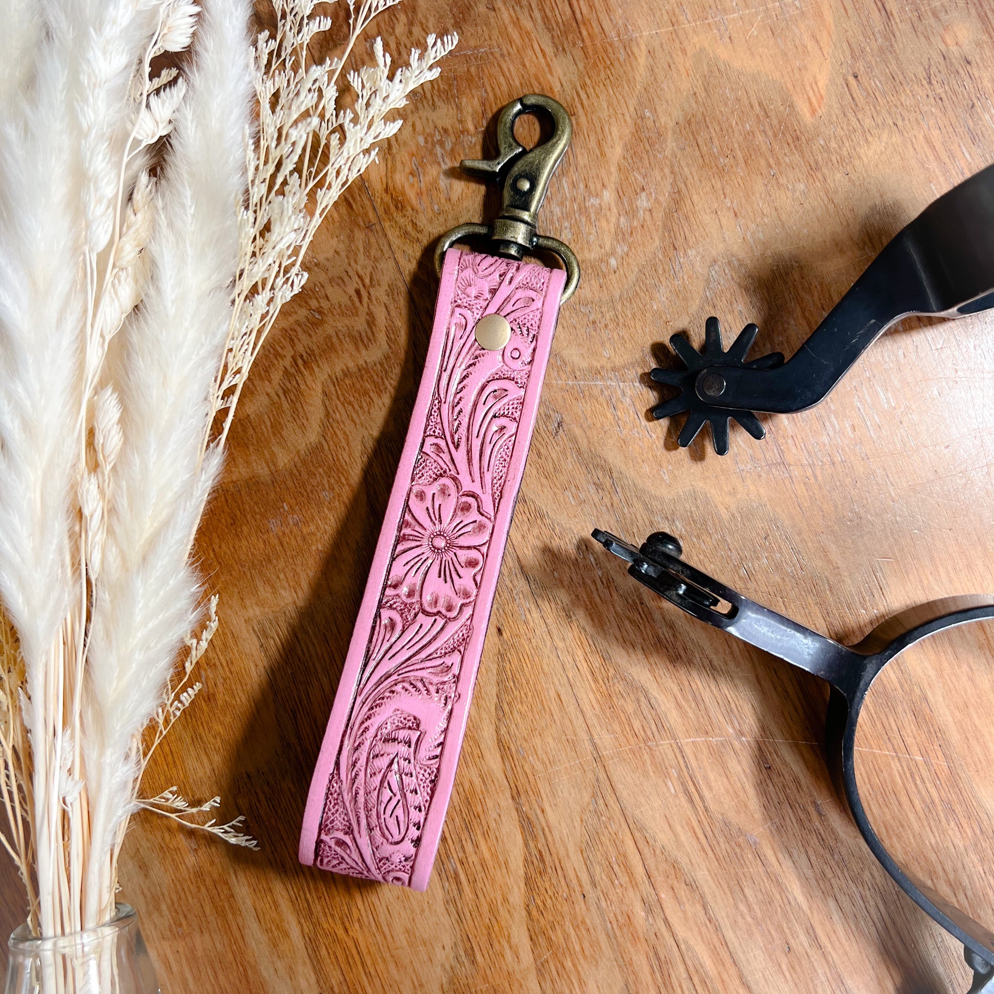 Cowgirl Candy Tooled Leather Keychain – Pink