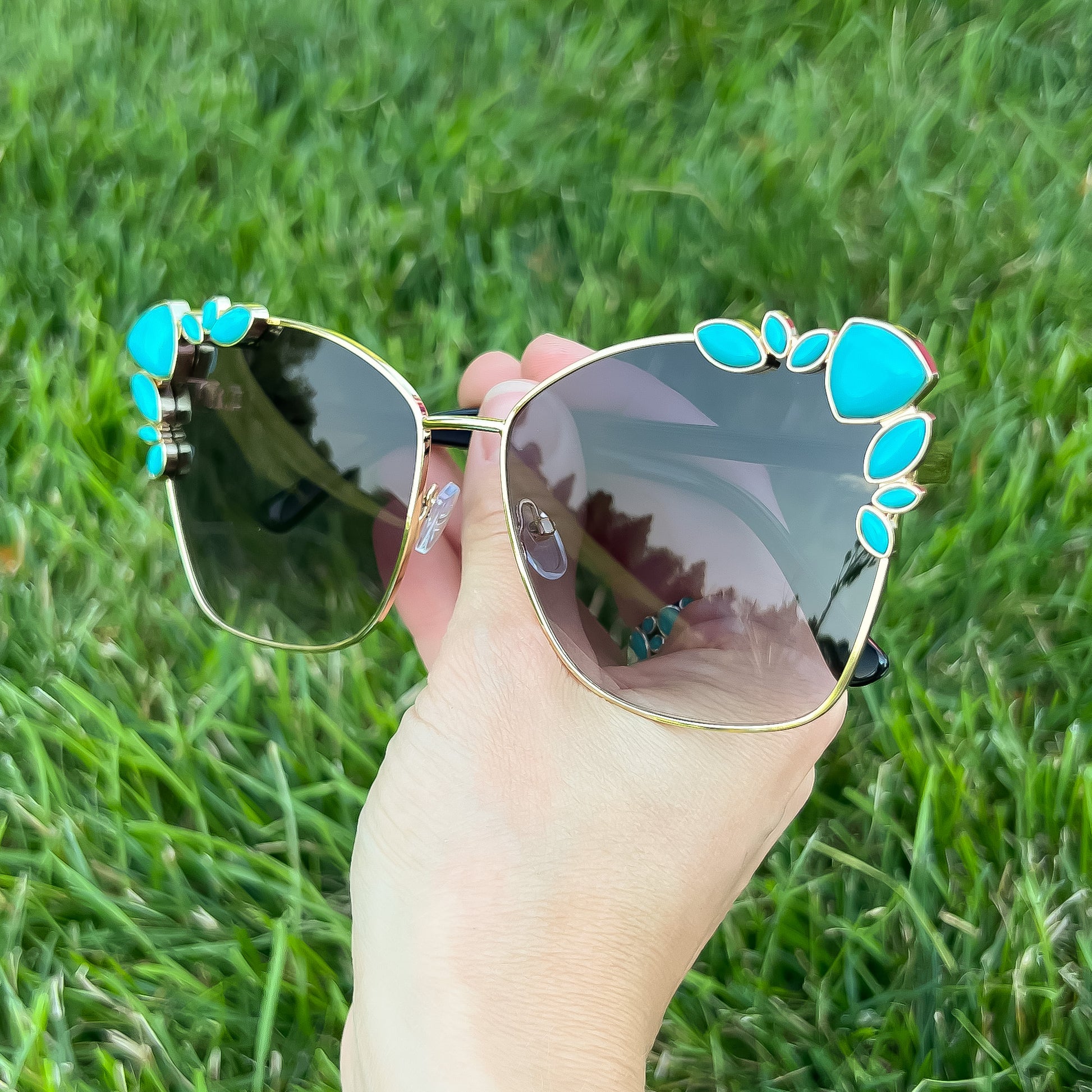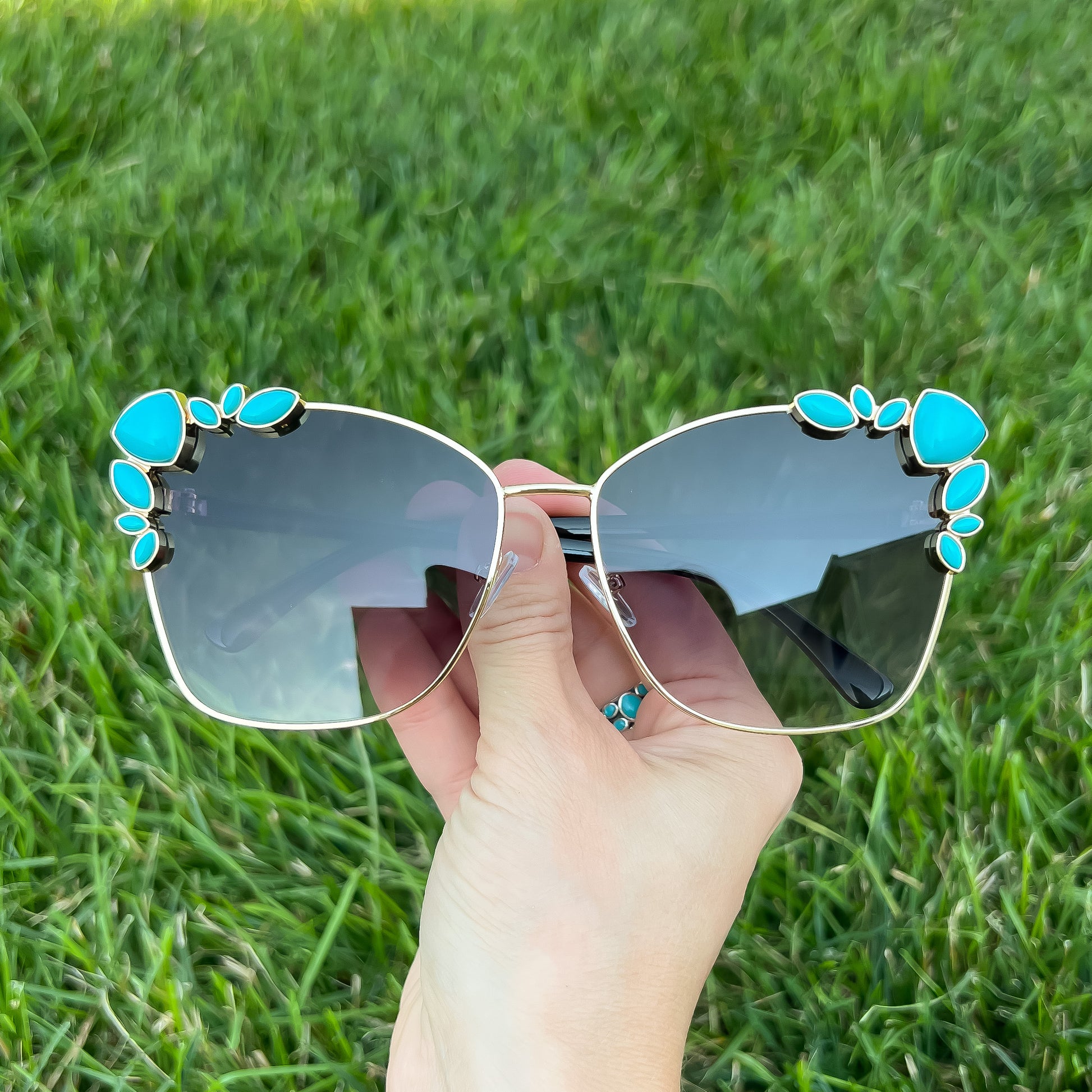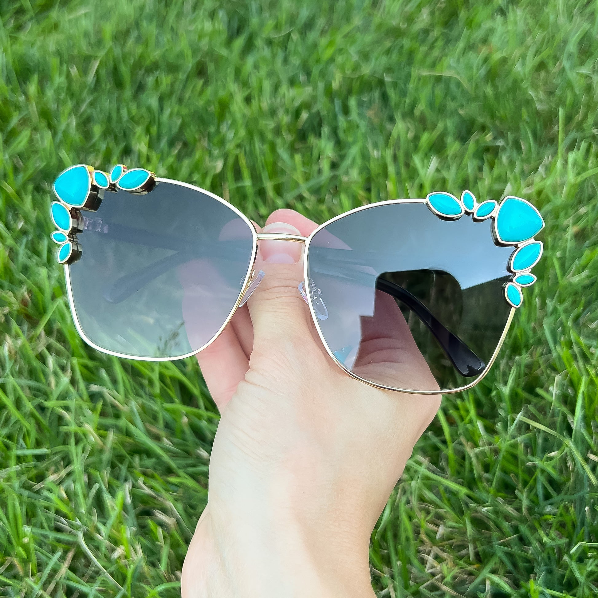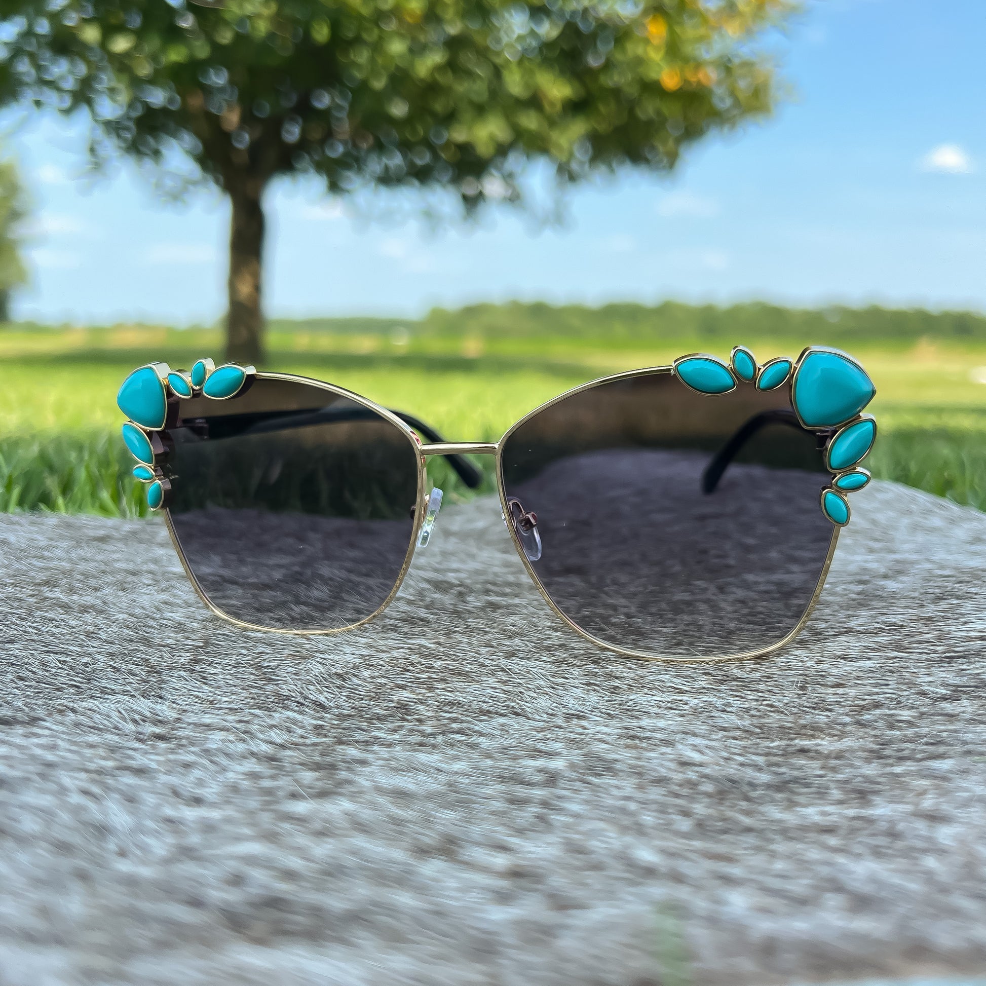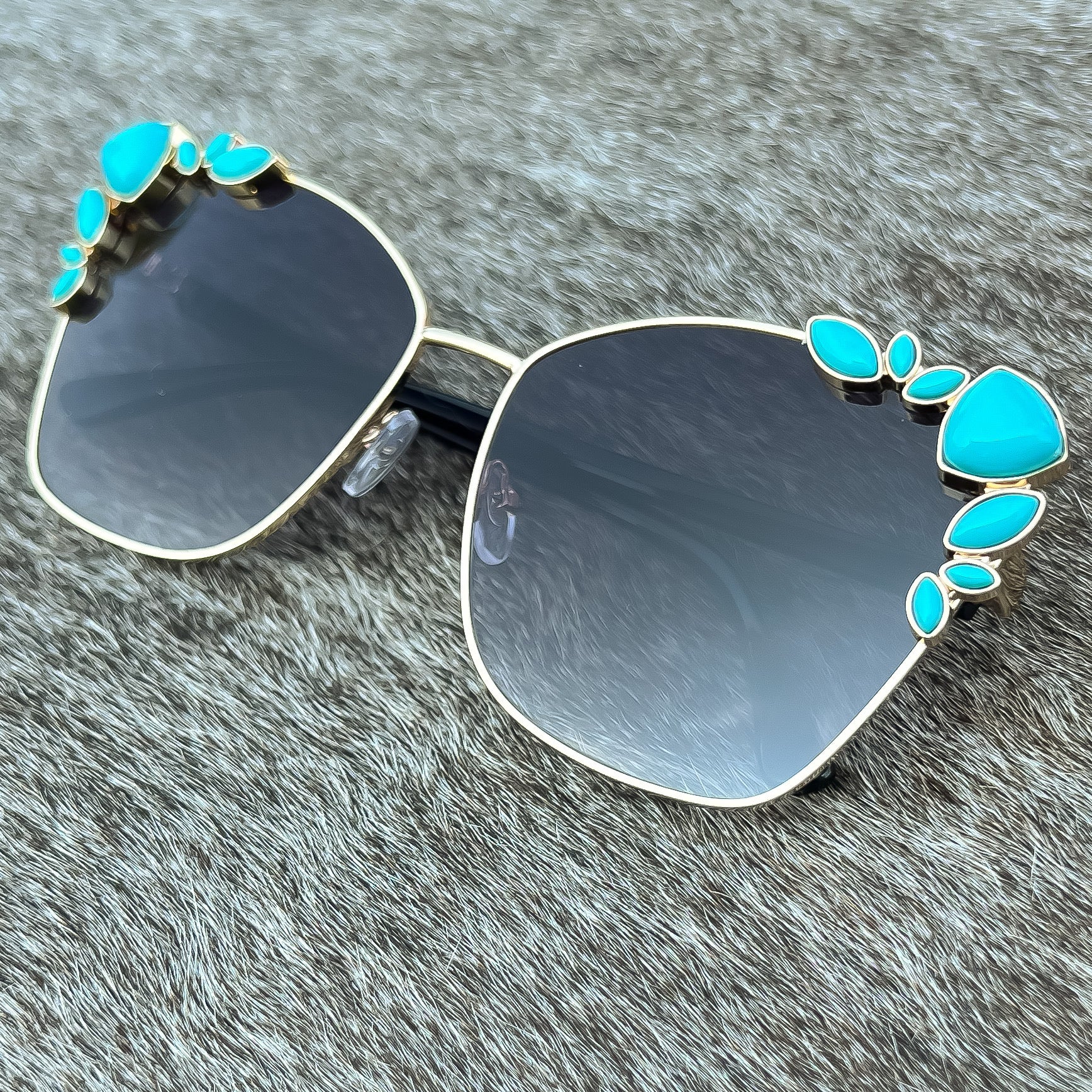 High Class Fancy Gold & Turquoise Stone Western Boho Sunglasses