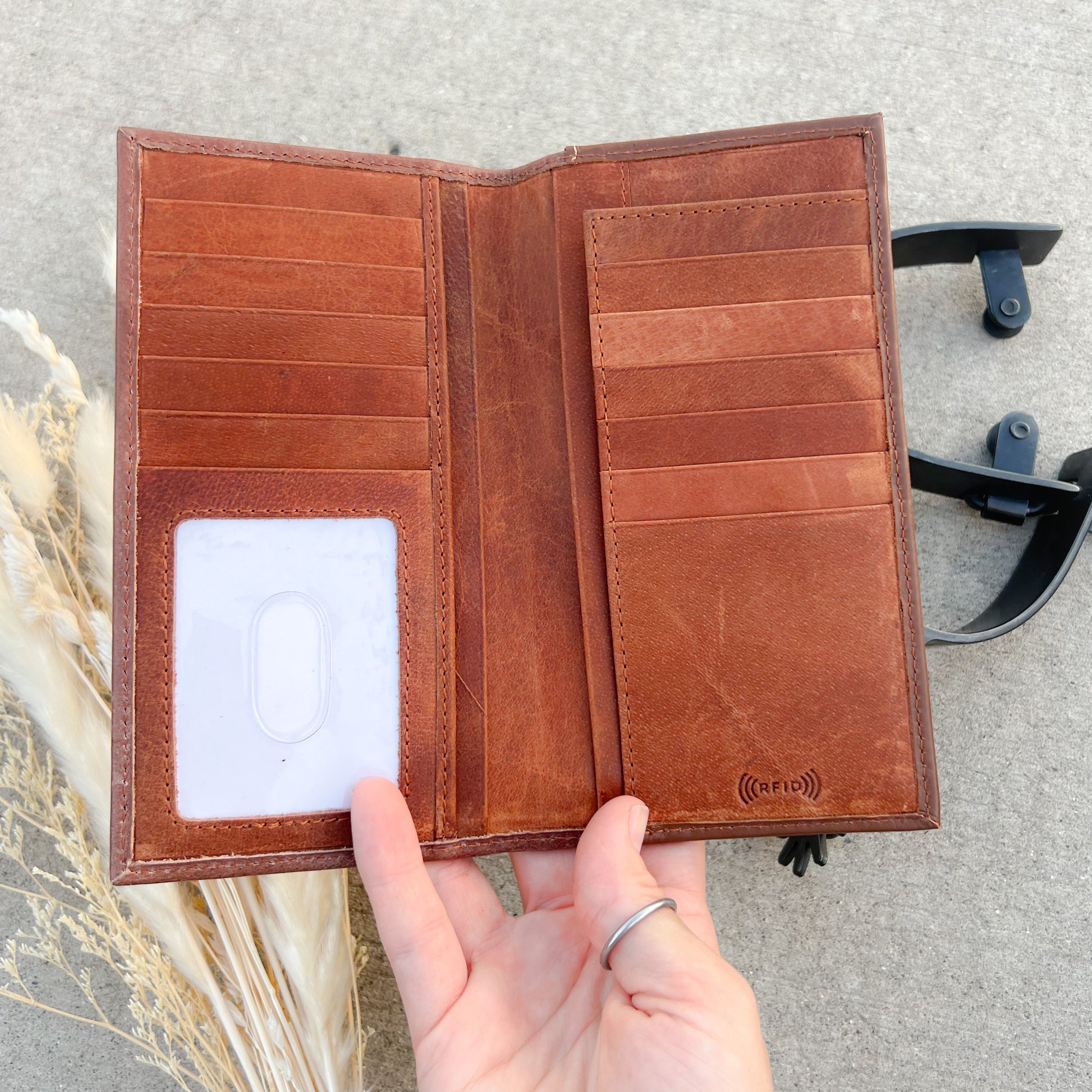 Designed to hold more than your average wallet, this rodeo-style piece includes multiple card slots and a tall bill compartment—perfect for keeping everything secure and organized, whether you're at the rodeo, out on the ranch, or just want to carry a little western edge.