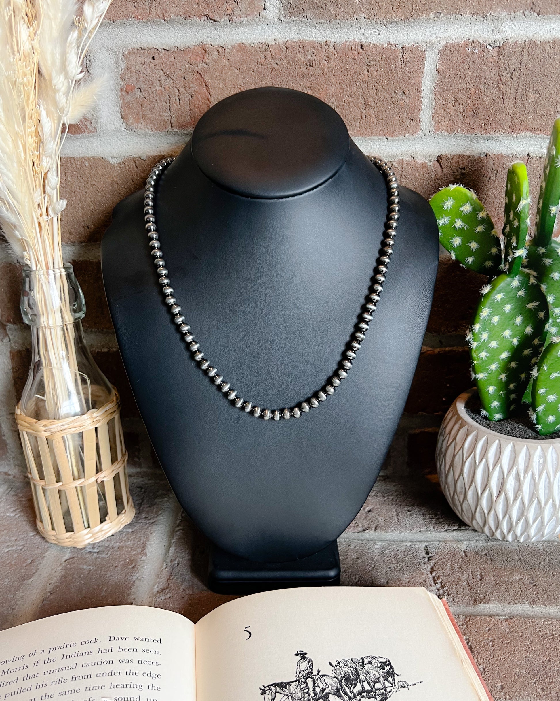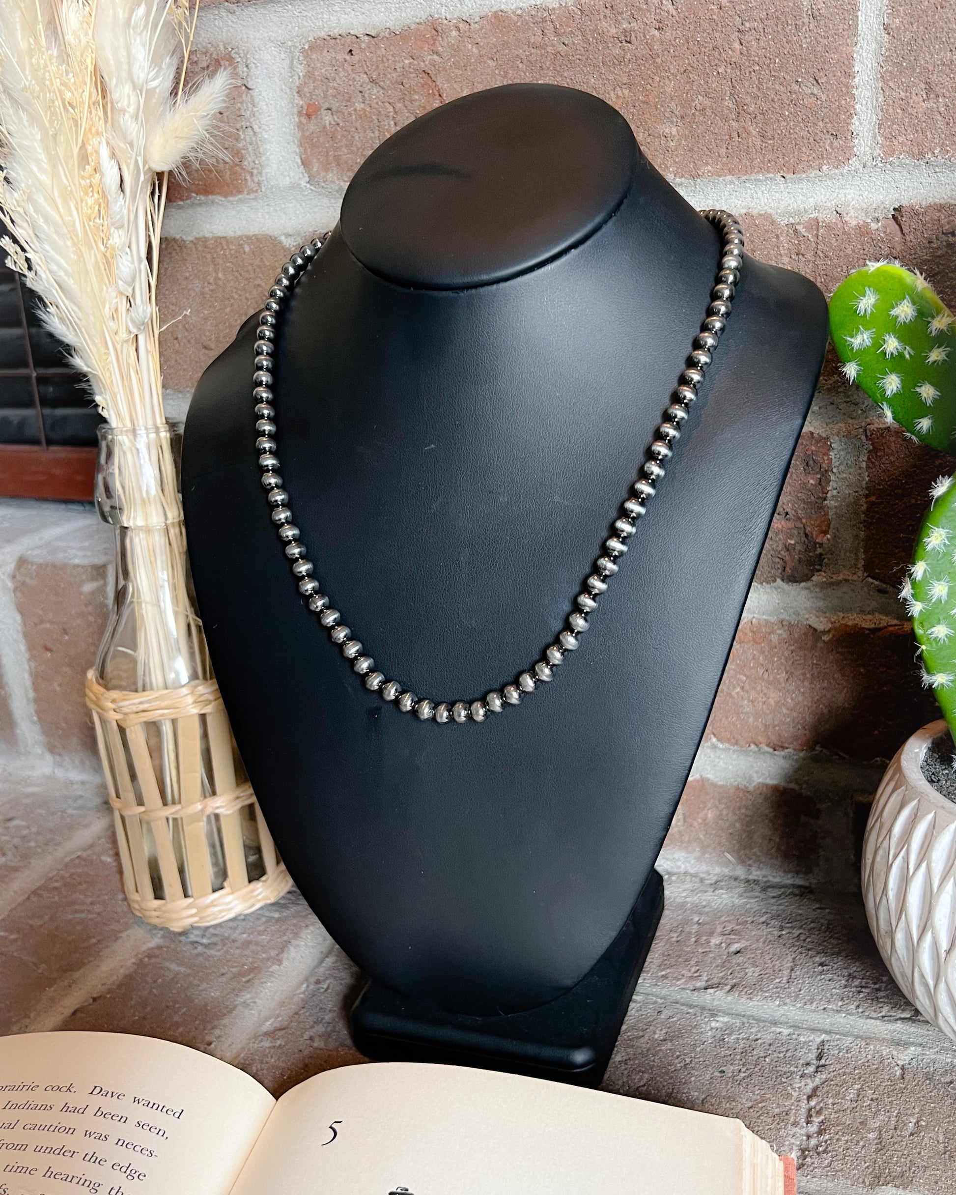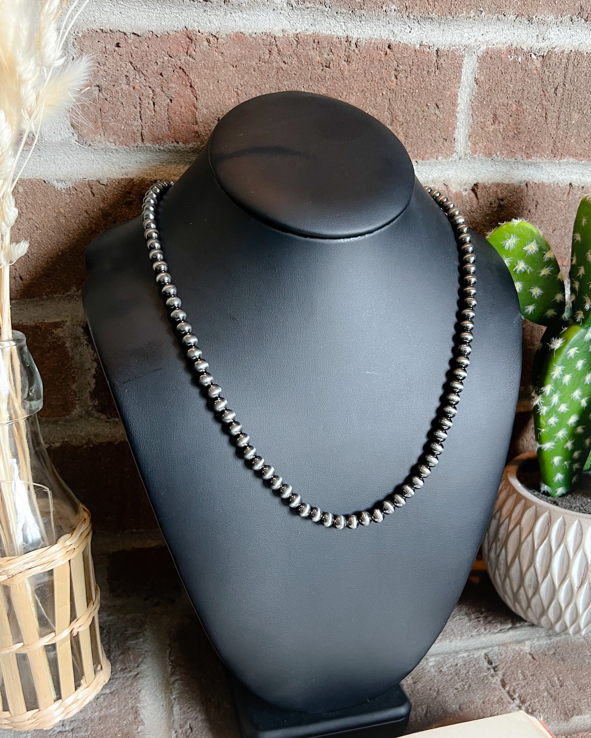 Navajo Style Pearl Necklace - 6mm - 19"