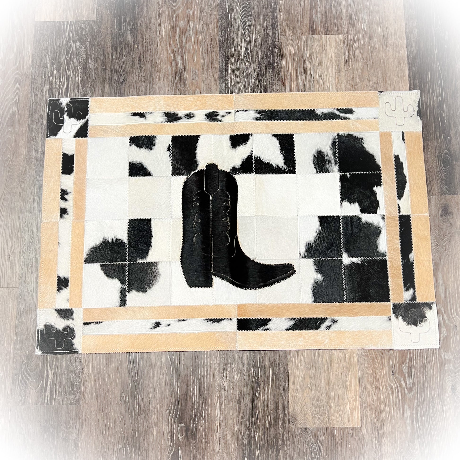 Product Name: Cowboy Boot & Cactus Patchwork Cowhide Rug