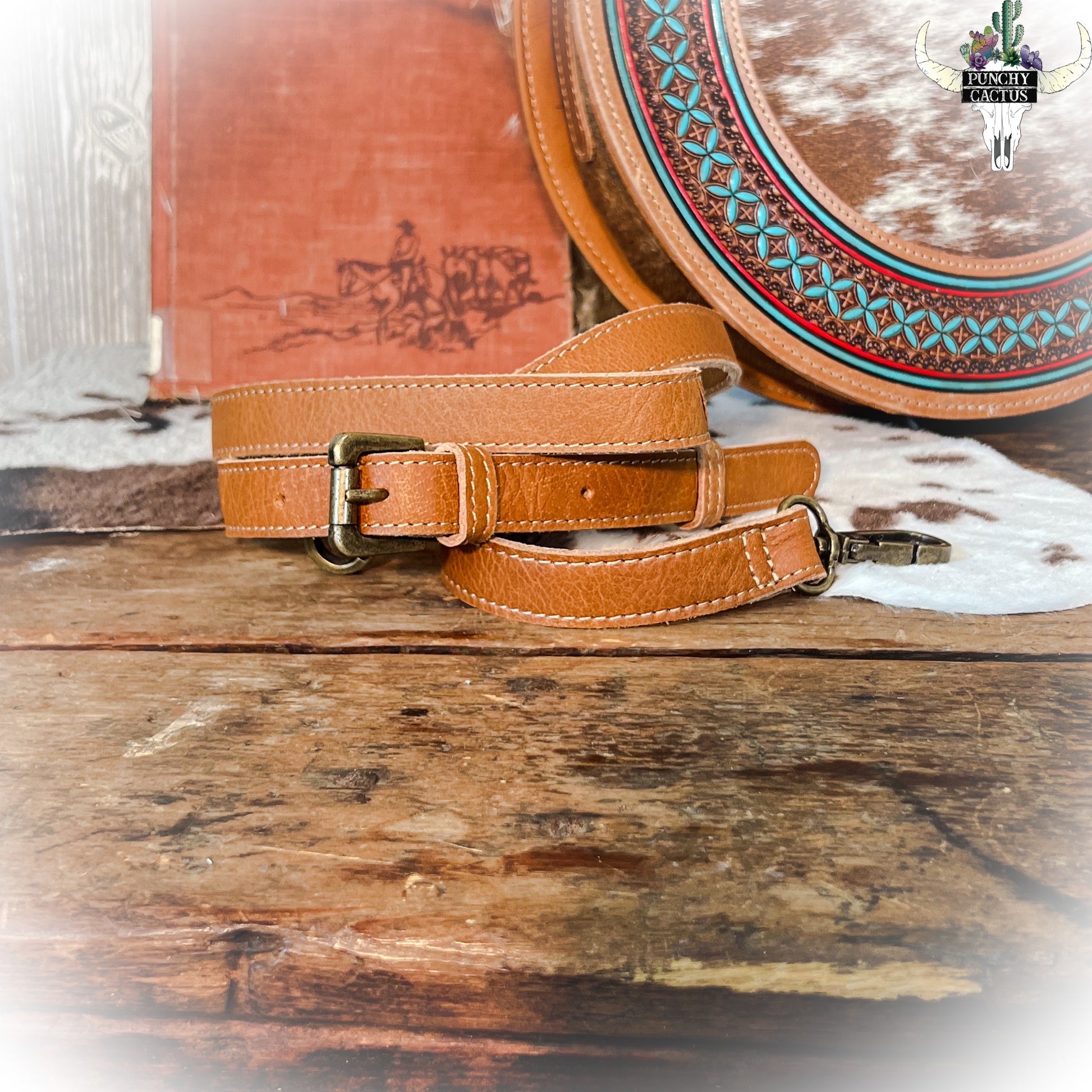 Laser engraved branding adds a personalized unique look to all of our cowhide products.