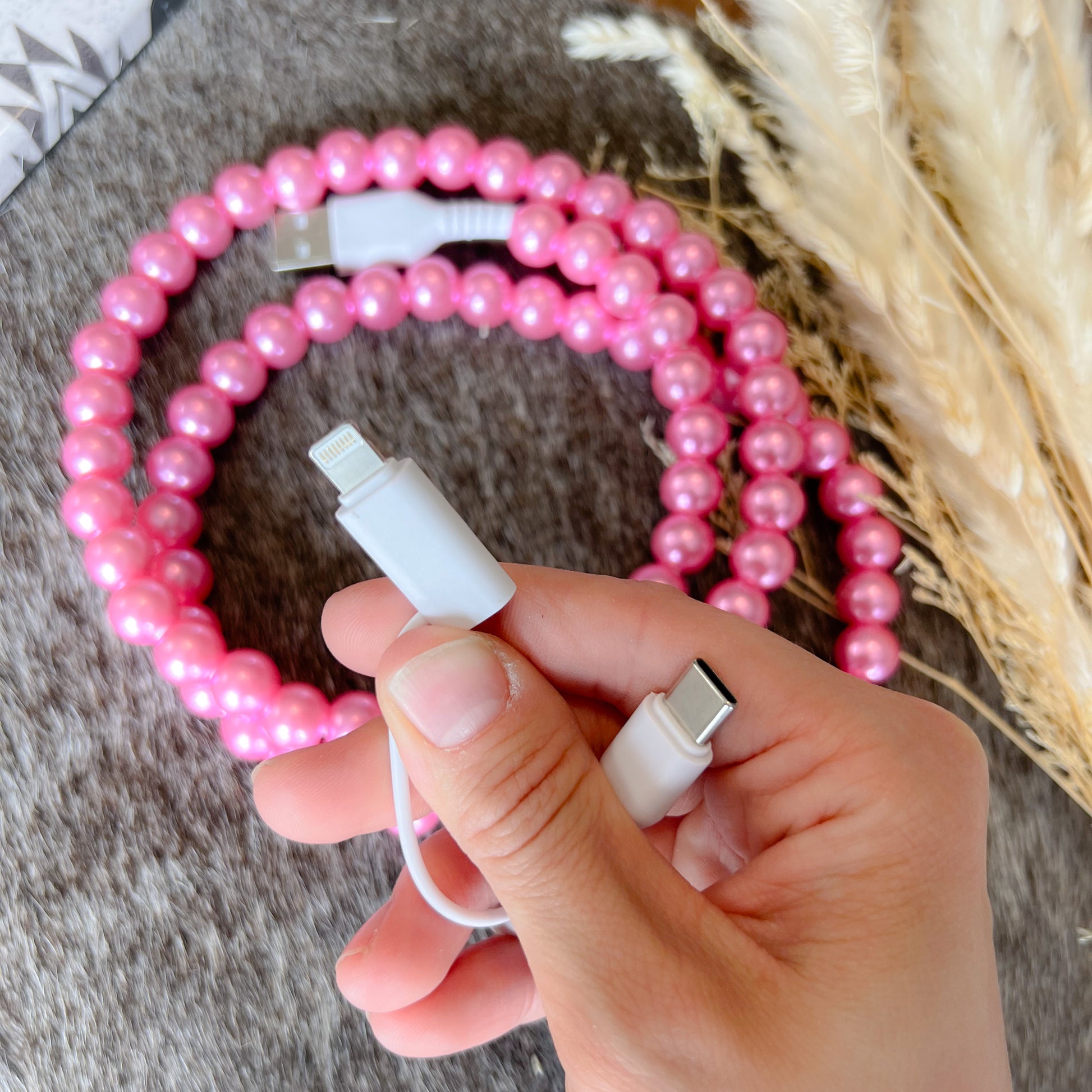 đź©· Pink Pearl Beaded 3-in-1 Phone Charger