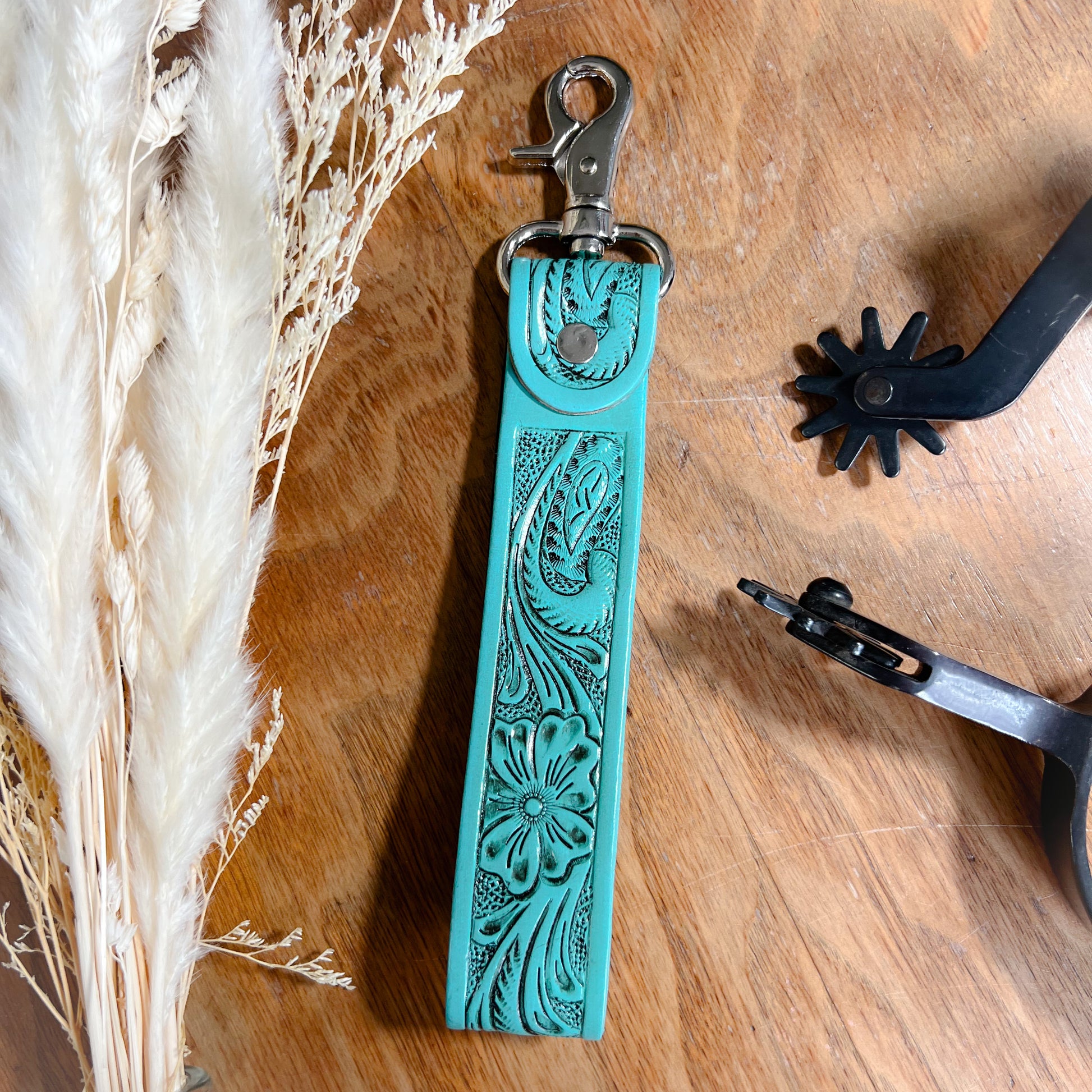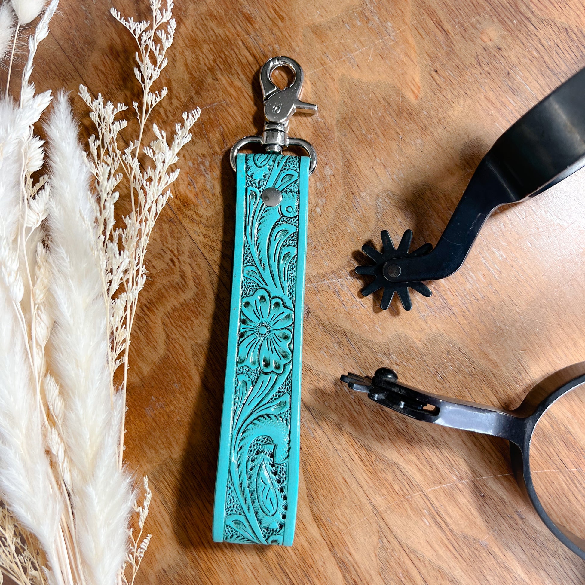 Rodeo Sky Tooled Leather Keychain – Turquoise