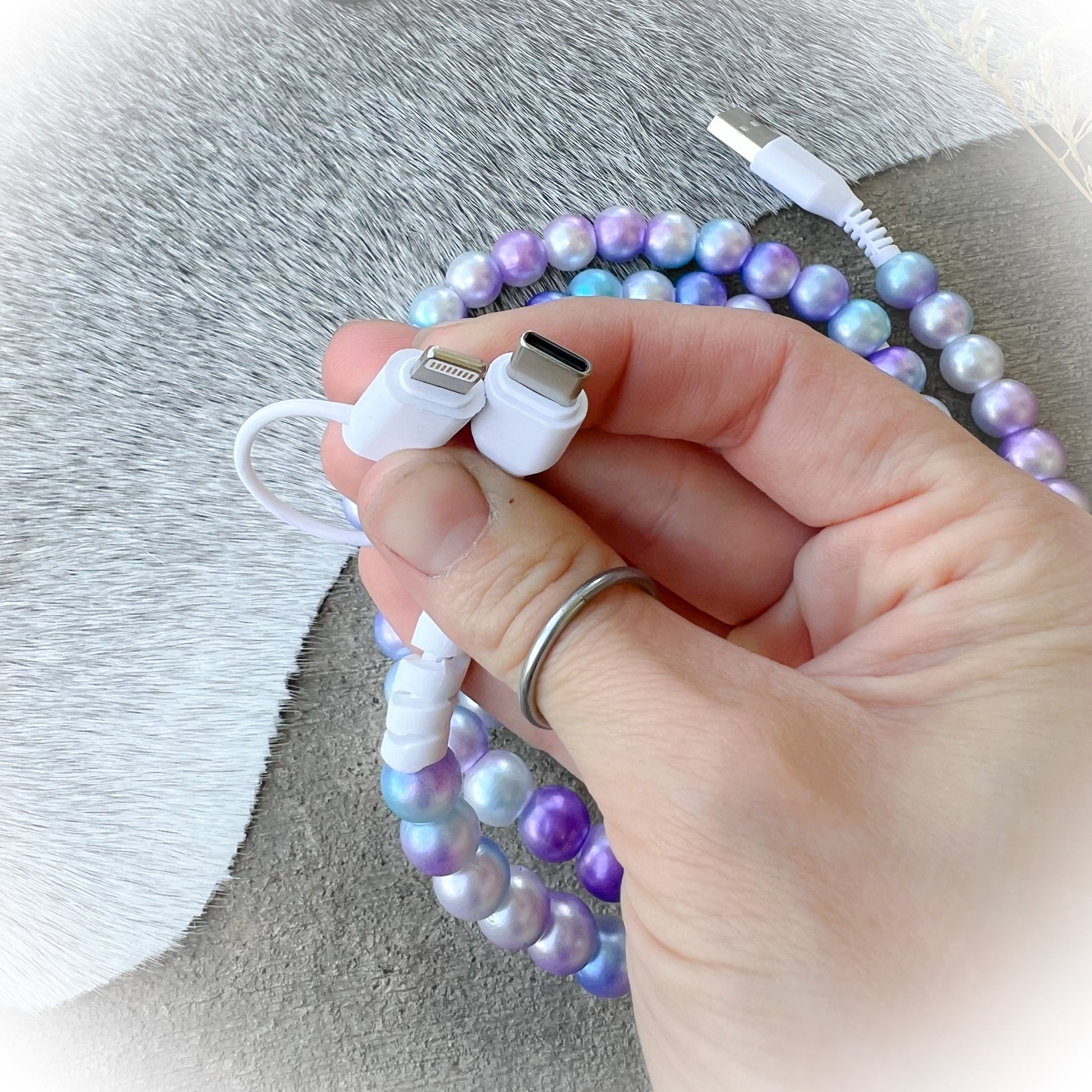 Shiny Purple-Blue Pearl Beaded 3-in-1 Phone Charger