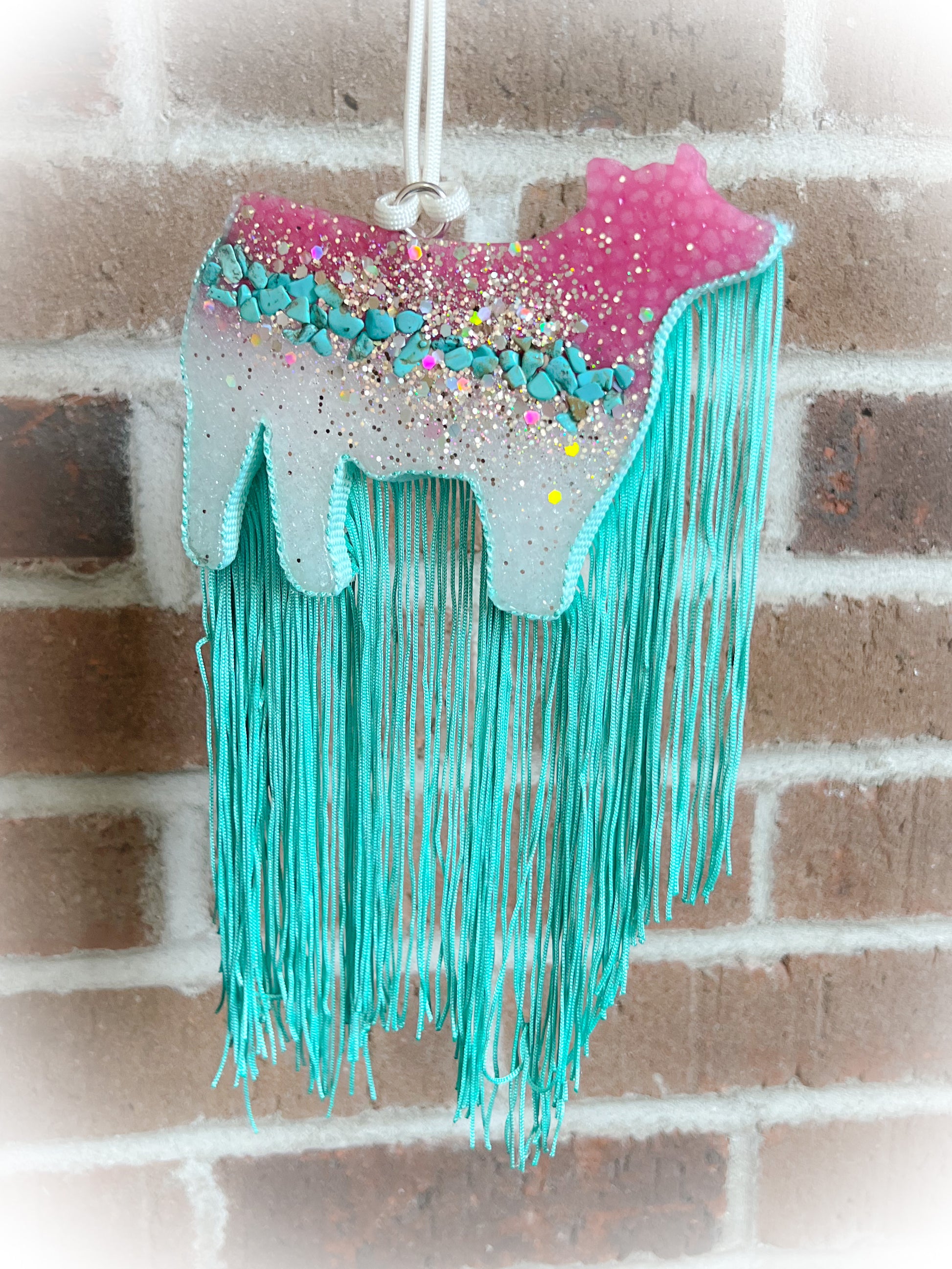 Size: 5”W x 4”H (excludes fringe and hanger)