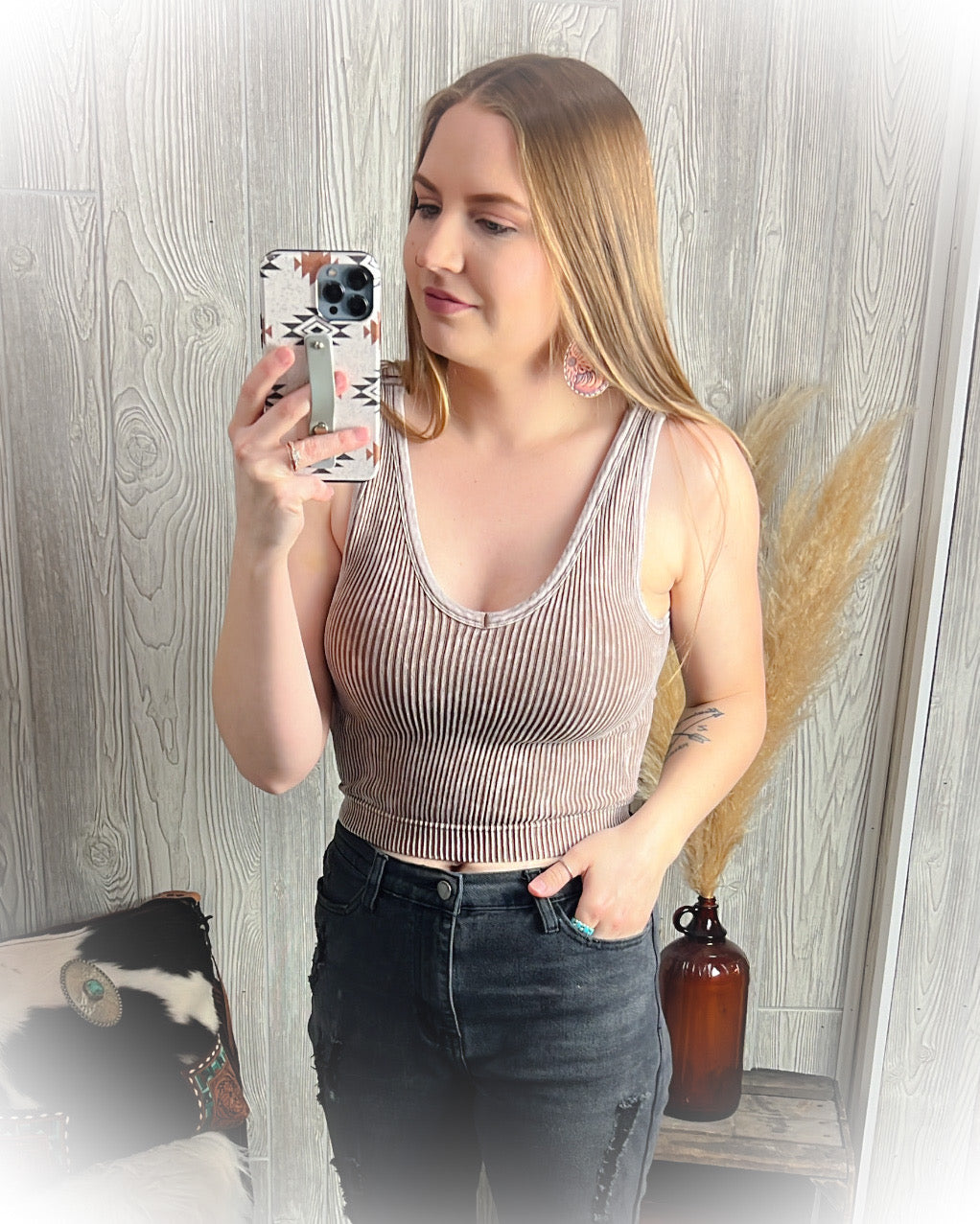 This So Comfy V-Neck Cropped Tank is your new everyday essential — seamless, mineral-washed, and ultra soft with a flattering V-neckline and just the right amount of stretch.