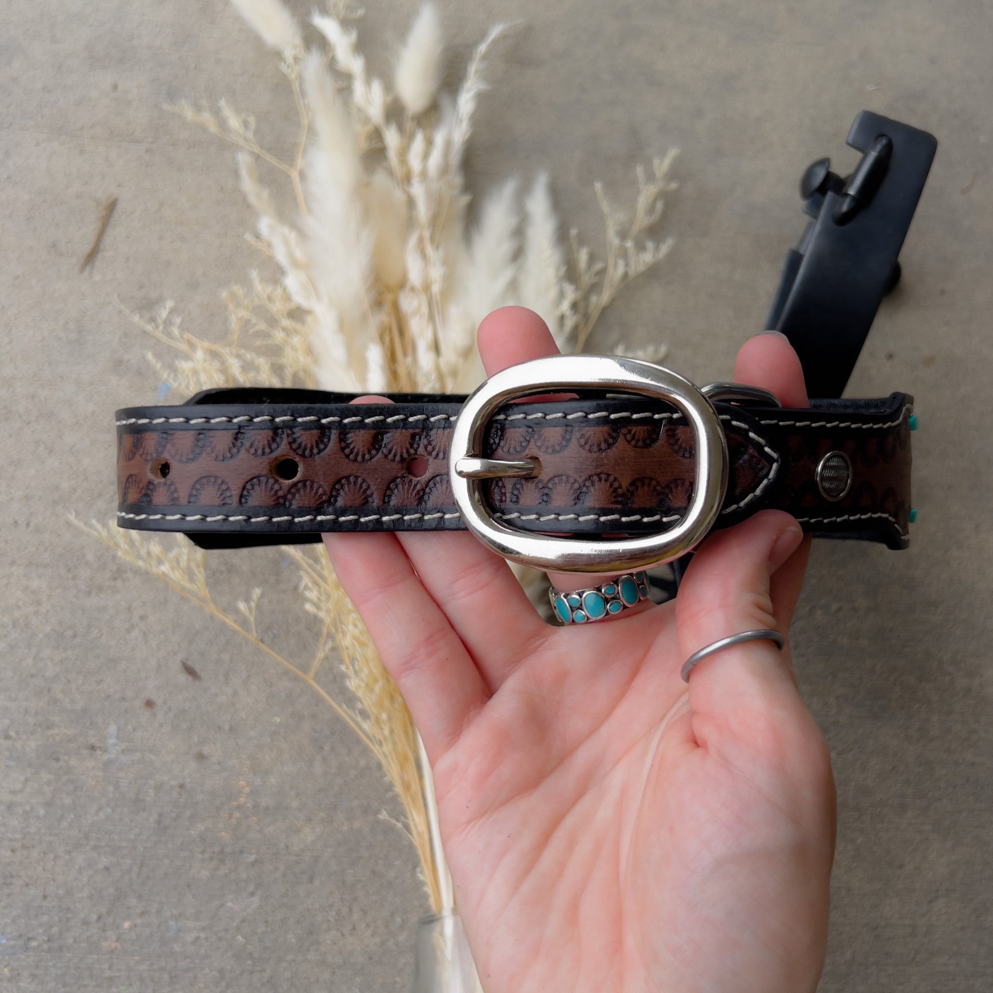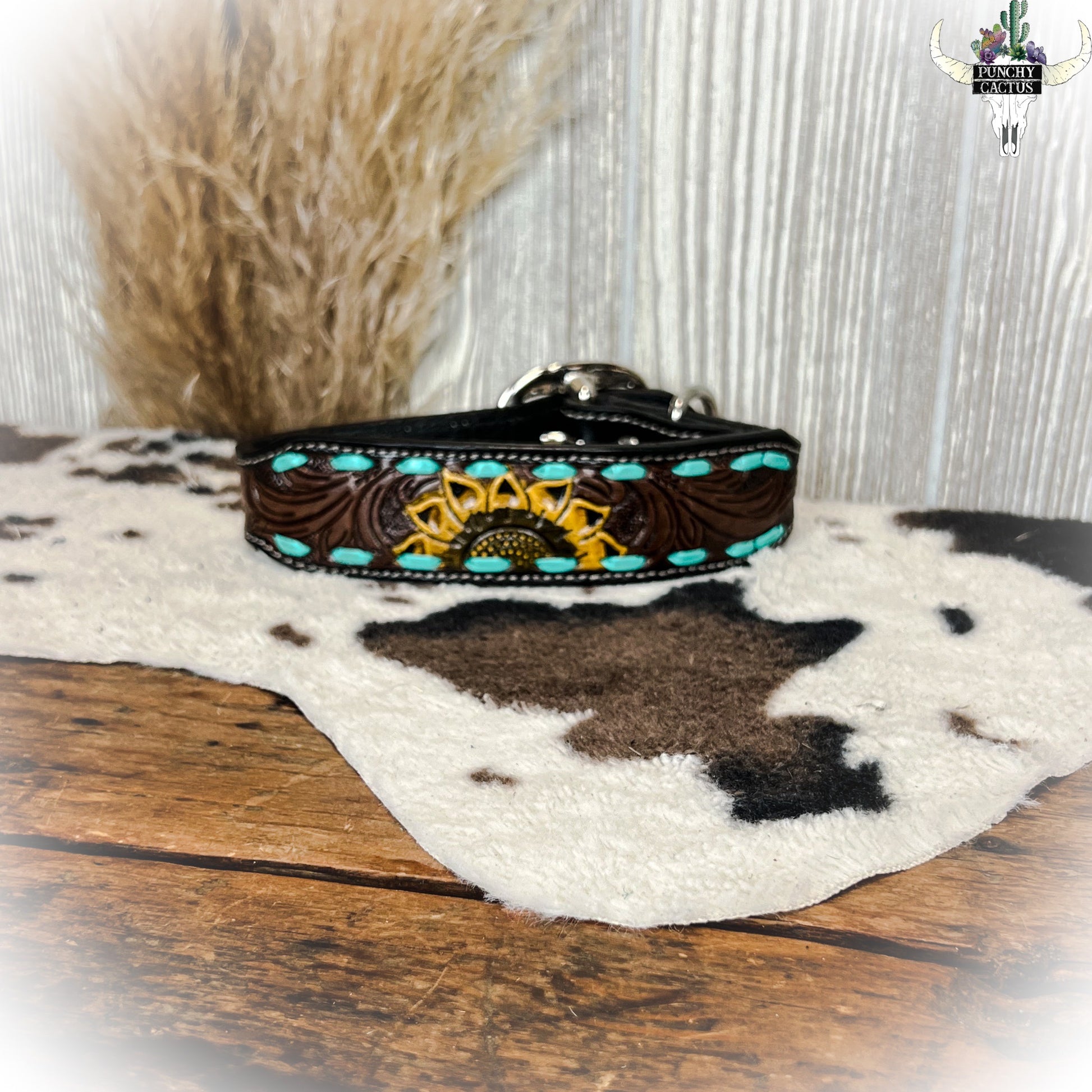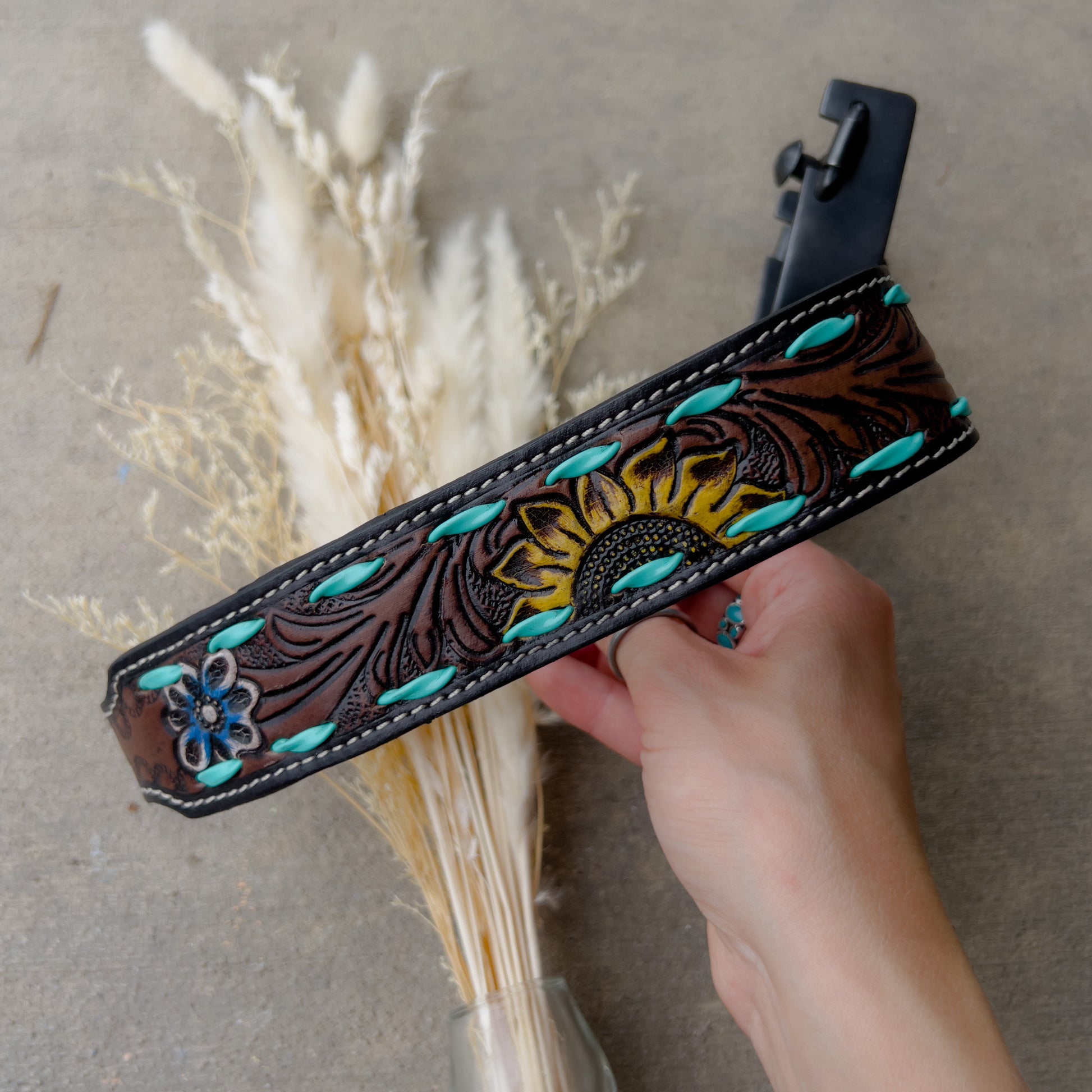 Sunflower Leather Dog Collar