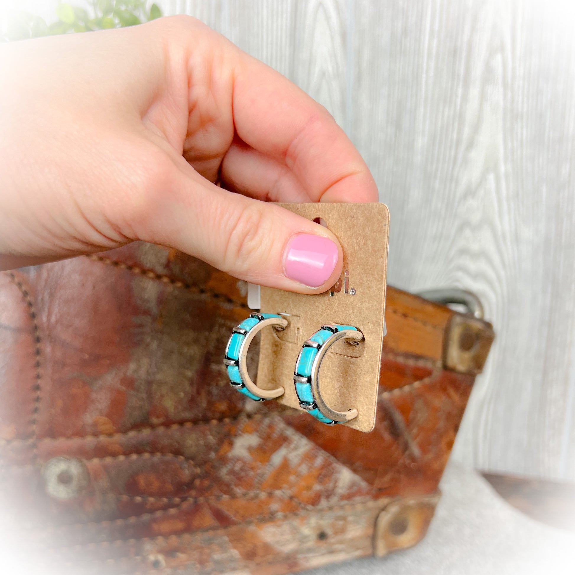 western hoop earrings, dainty western earrings, faux turquoise earrings, cowgirl jewelry, western boutique earrings, minimalist western jewelry, semi hoop earrings