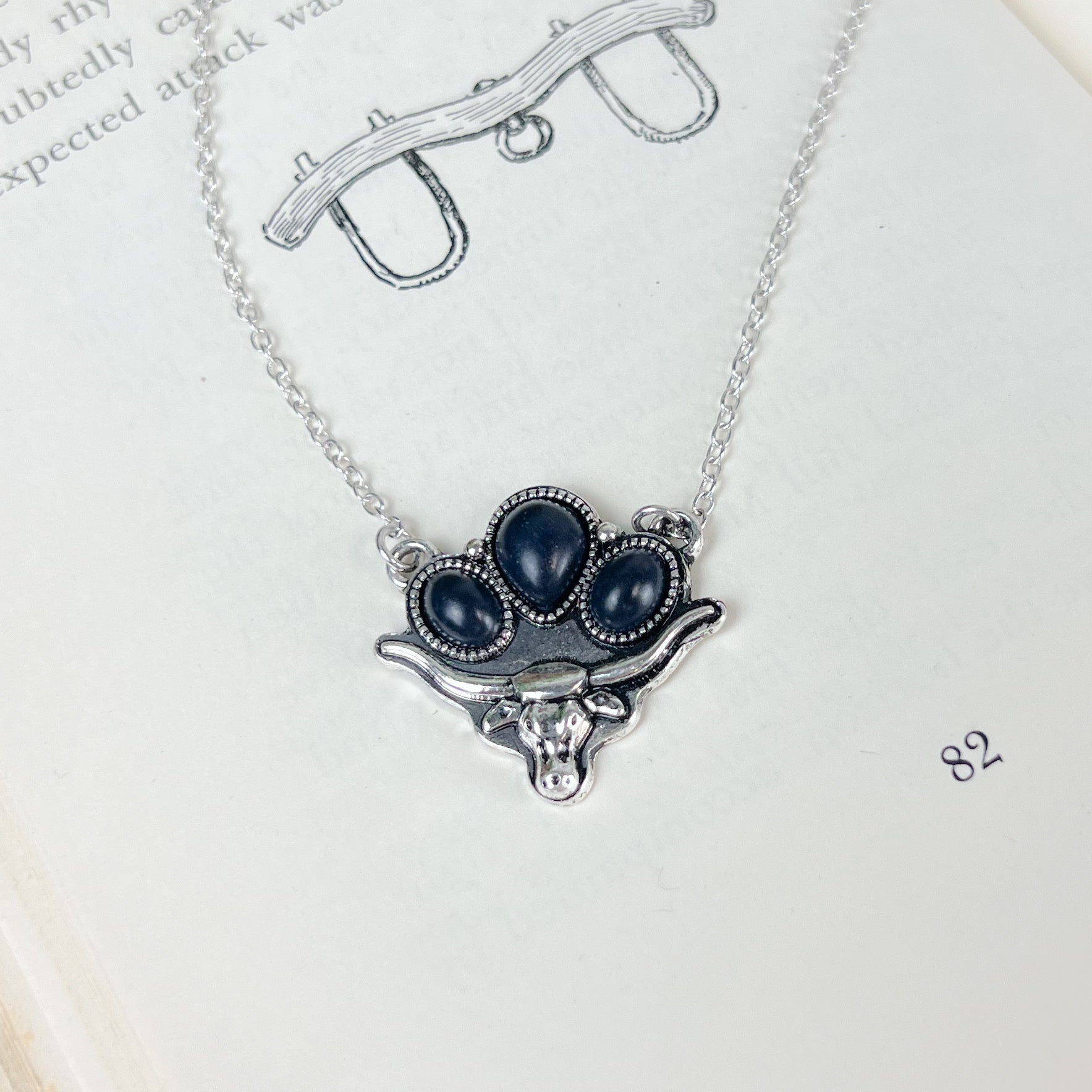 Western Three Stones Steer Necklace - Black
