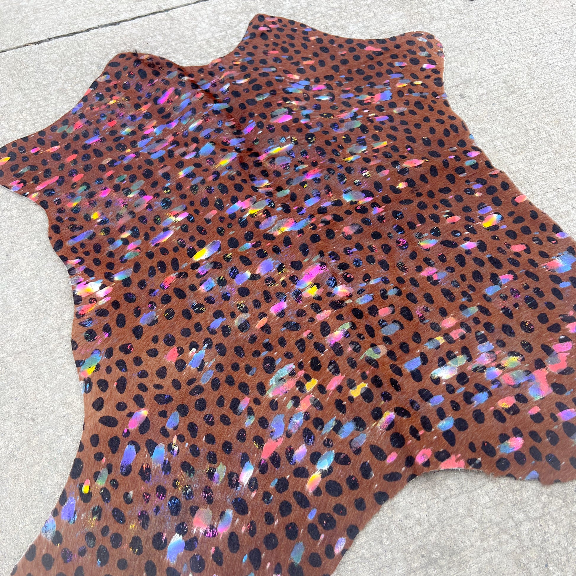 Wild Rainbow Leopard Cowhide Rug – Small Genuine Western Hide (Approx. 2' x 3')
